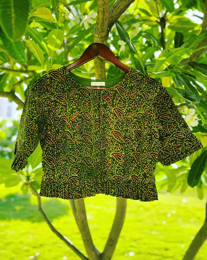 Chafkali blouse boasts its comfort that comes from its very design. it is perfect to be worn as saree blouse or as a jacket on your westerns. you may choose to style it just as you wish.